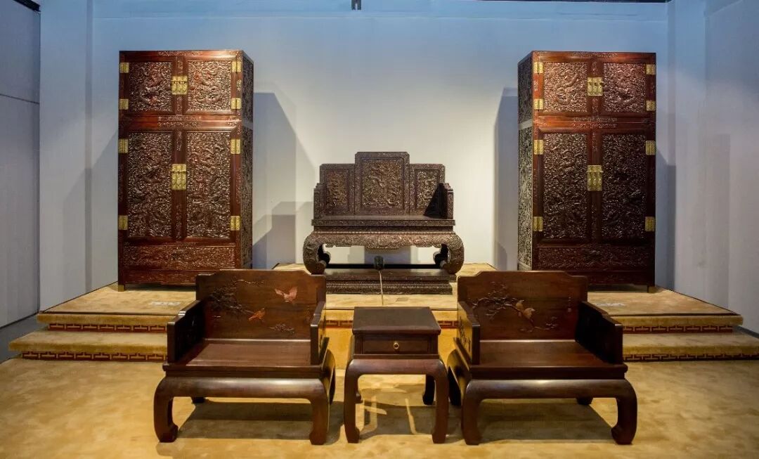 《云龙顶箱柜》《花鸟宝座》交趾黄檀