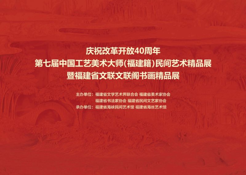 为庆祝改革开放40周年,贯彻落实党的十九大精神,大力弘扬优秀传统文化,近日,由福建省文学艺术界联合会、福建省美术家协会、福建省书法家协会、福建省民间文艺家协会主办,福建省海峡民间艺术馆、福建省海丝艺术馆承办的“庆祝改革开放40周年——第七届中国工艺美术大师(福建籍)民间艺术精品展暨福建省文联文联阁书画精品展”在福建省海丝艺术馆展出。